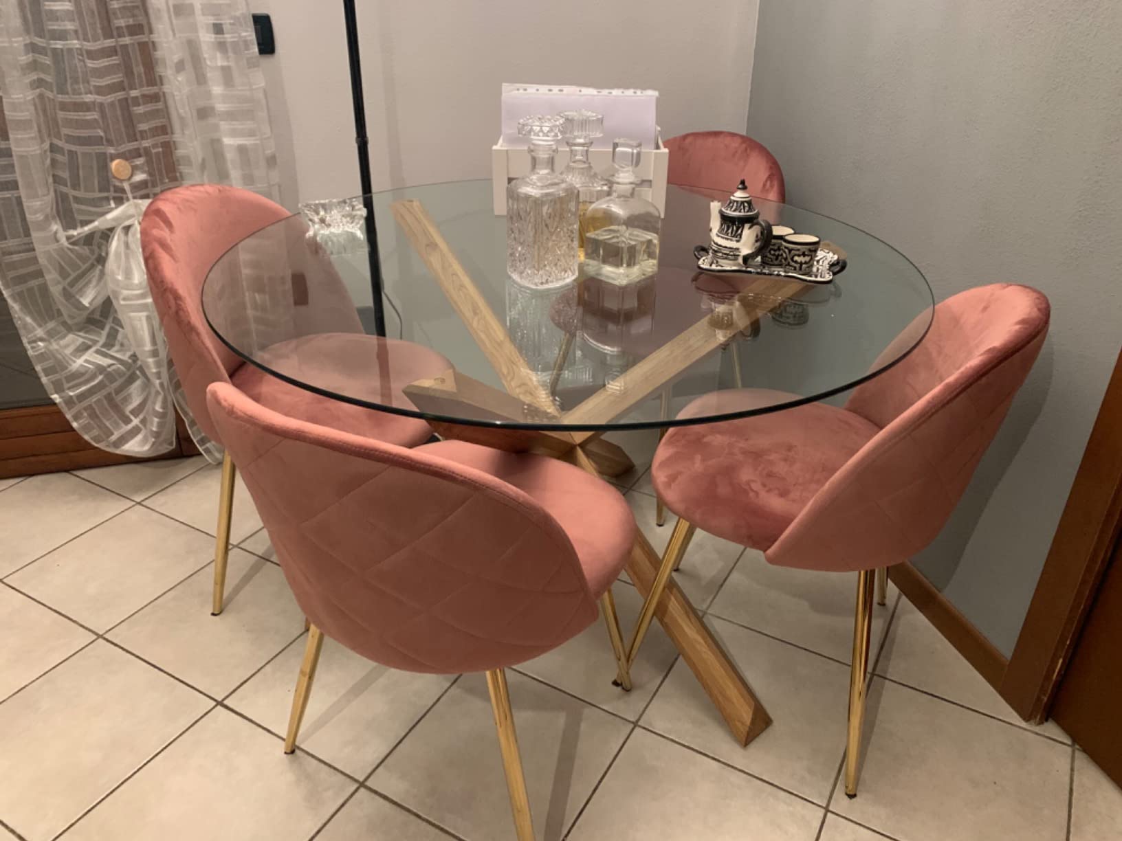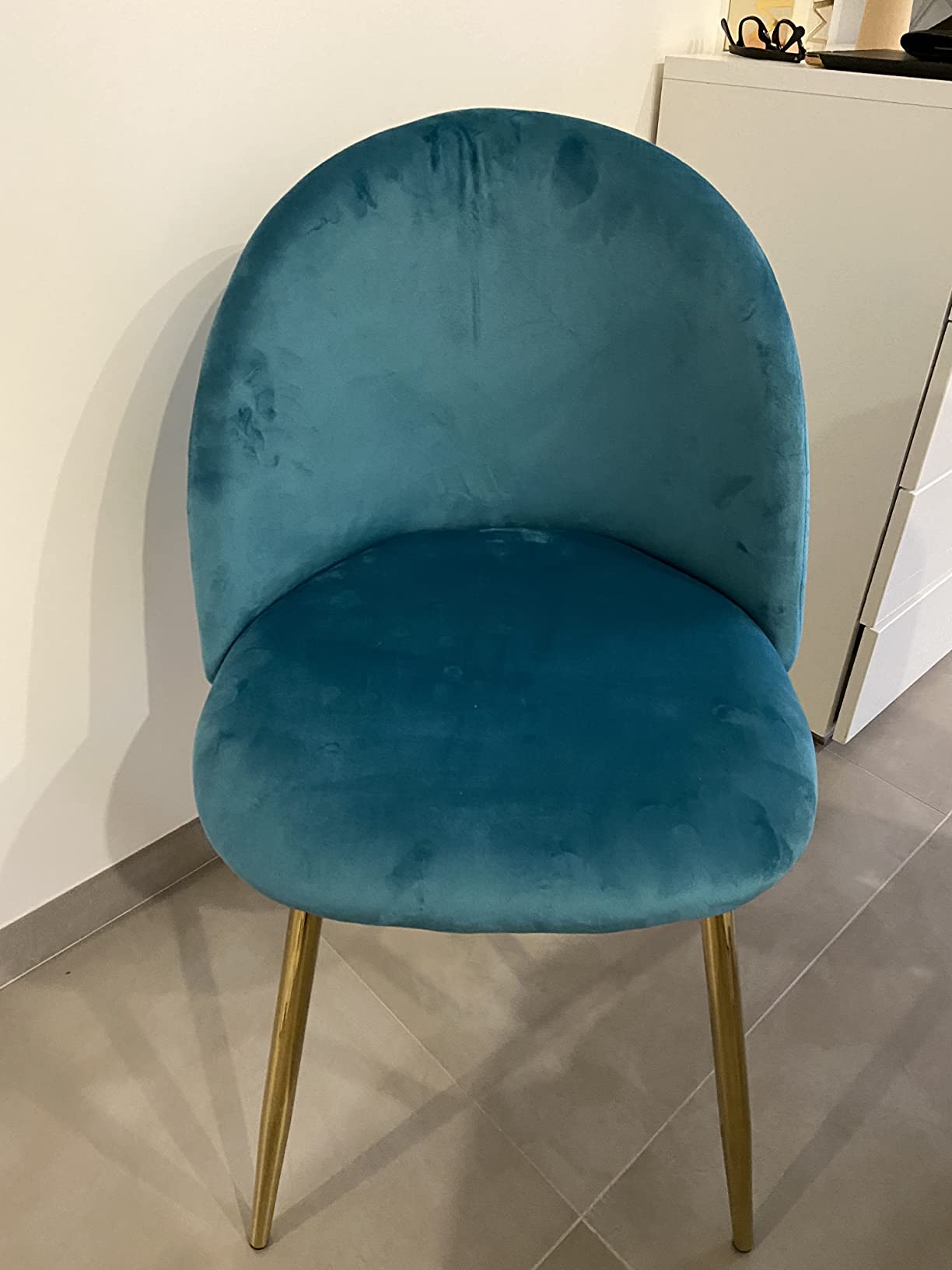 Sedia da Soggiorno, Poltrona Effetto Velluto e Piedi Oro - Blu